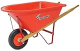 Sealed hardwood handles.Measures 33-by-17-by-15-3/4-inches.Corrosion-proof poly tray.Steel axle and ball bearings with solid rubber tire.Junior size wheelbarrow with man-size features..